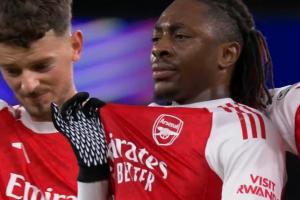 进球后,埃泽的庆祝表情非常淡定,几乎没有表情,对比强烈的是身旁庆祝的队友们!