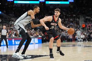 马刺战绩来到54胜18负,火箭战绩来到43胜28负,火箭已无法超越马刺,马刺锁定西南赛区冠军。